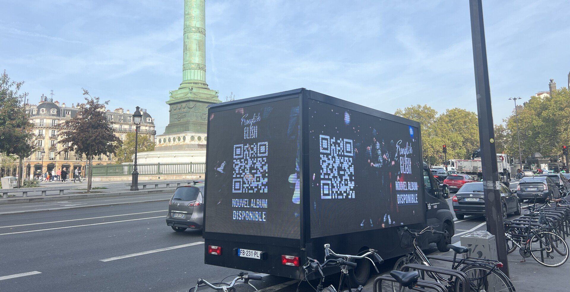 Les fans ont pu télécharger en avant-première le nouvelle album de l'artiste en scannant le QR code géants présent sur chacun des 3 écrans du camion publicitaire LED. L'intégration de QR code à la création visuelle diffusait sur le camion permet de générer de l'interactivité directe avec vos clients/prospects.